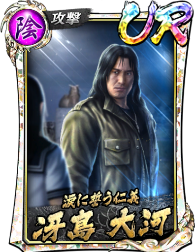 | AB | 状態異常耐性100% ボス襲撃時の獲得Pt+15% 東城会/組長の味方の攻撃力+12% 敵のBS・HACTのバトルスキルCT後退を15%低減 味方陰属性の相手へのダメージを12%増幅と会心率+20% |